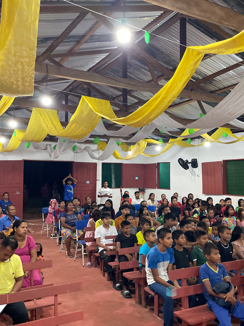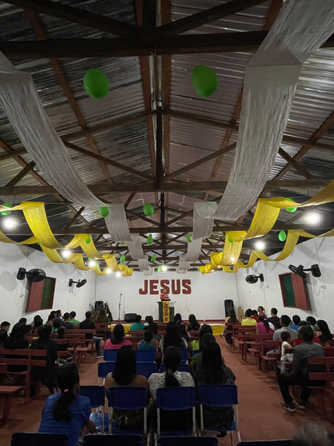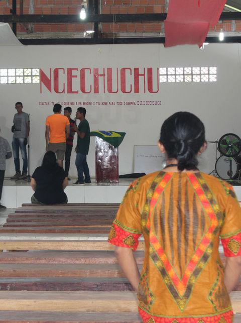Espaços da base de treinamento missionário na comunidade ribeirinha Pacatuba, da Casa de Adoração e do Centro Educacional.